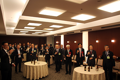 同志社大学 名誉教授の渡辺 好章 理事の開会の挨拶に続き、平成24年に受賞された同志社大学名誉教授の田坂 明政 評議員より祝辞ならびに乾杯のご発声をいただきました。