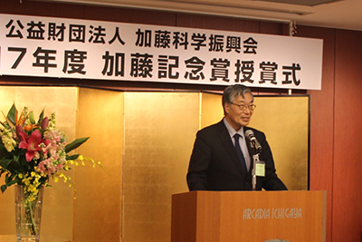 令和7年11月14日、アルカディア市ヶ谷において、令和7年度第54回加藤記念賞の授賞式が行われました。